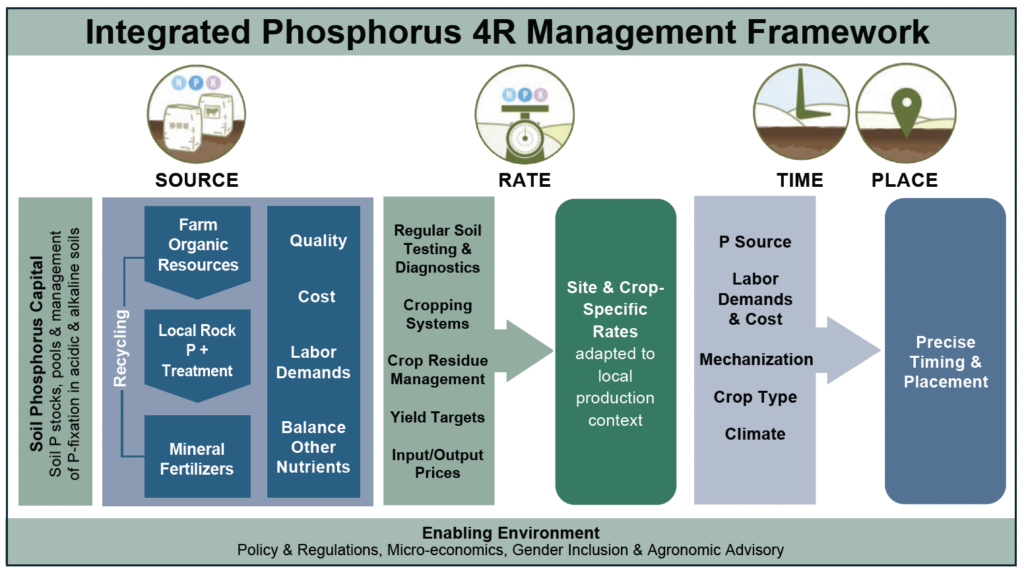 The Integrated Phosphorus 4R Management Framework provides a unifying conceptual structure that links soil processes, crop demand, farmer decision-making, and enabling environments into a coherent system for sustainable phosphorus management in Africa (Fig. 2).