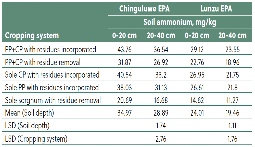 Table 4. Effects of cropping system and their residue incorporation on soil ammonium.