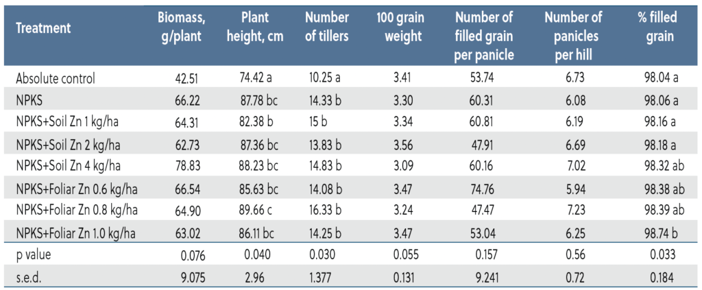 Table 4. Efect of varying sources, rates and application methods of zinc on rice growth and yield parameters at Mkula, Kilombero, Tanzania.